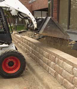 SRWs can also be installed much quicker than other types of walls including CIP walls, timber walls, stonewalls and masonry walls. An experienced SRW installation crew will lay between 750 and 1,500 square feet of wall per day on larger projects. Which means that a 5,000 square foot wall can be completed in less than one week. An equivalent concrete or masonry wall would require approximately twice as much time considering the form work, rebar placement, concrete placement and curing time, and backfill placement. A significant amount of the savings in time is the fact with an SRW the backfill is placed at the same time the wall is built instead of waiting until after the wall is completed as with other type walls.