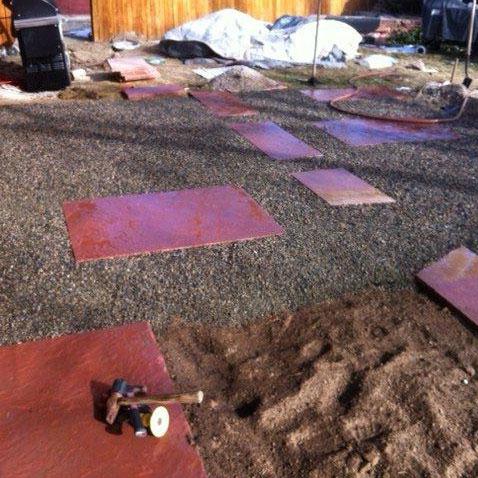 The rings of Invisible Structures Gravelpave2 were cut and the flagstone pavers placed in the recessed areas. Designed by K. Dakin Design, two patios in the back yard covered 300 square feet. The contractor was Greg Alvarado of Green by Nature.