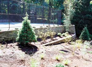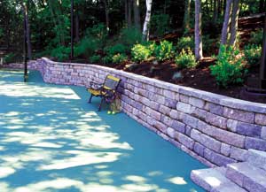 ?EUR??,,????'??The Anchor Highland stone has the flexibility to include design features, (curves and minimal footprints), installation efficiency and significant cost-savings over natural fieldstone,?EUR??,,????'?? said Carlos Medeiros, a project foreman for ValleyCrest Landscape Development. ?EUR??,,????'??Significant excavation and fill was required in order to establish a large flat area at the proper elevation, and allow for the significant drainage system under the court. In addition, old stone and cement walls had to be removed.?EUR??,,????'??