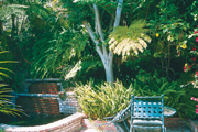 One of the most rewarding aspects of residential water design is the ability to discover hidden features that may normally go unnoticed. In order to optimize the features of the site, it is important for designers to remain flexible in the design process. If you can maintain an open mind when designing, you may uncover a site feature that will exceed a homeowner?EUR??,,????'???s expectations. Recently, my company completed a renovation for a project located in California. What follows is a chronicle of this very special project: 1 & 2: Welcome to the brick patio outside the kitchen door. Despite its proximity to the kitchen, this area didn?EUR??,,????'???t even rate in the top 10 list of important areas for landscape renovation at this project. Sure, the uneven brick patio area could be reconfigured and the rather ungainly pond shape could be scaled back, but the fountain worked, so this part of the project just wasn?EUR??,,????'???t a priority for the homeowner. 3: Odd-shaped pond and water feature before clean-up. Though the fountain was visible from the dining room window, the abundance of ferns and tropical foliage covered up all problems except for the strange shape of the pond. 4: Our little brick fountain/pond is a giant four-tiered Goliath. With a foliage clean-up complete, we find ourselves confronted with an enormous, unmatched brick, poorly conceived fountain. And the pond still has a very strange shape. Re-working the fountain and adjacent brick patio rockets to the top of the priority list, as this entire monstrosity is visible through the dining room windows every time the front door is opened to visitors. 5: Reshaped and deepened pond with thoroughseal on brick face before tiling. Work begins in earnest. The loud, ineffective pond equipment pump is updated and relocated to an adjacent shed, out of sight and earshot of the patio. The second tier of the fountain is plumbed to cascade water. The single-brick "bridges" spanning the fountain (presumably to collect leaves from the towering Ficus benjamina trees) were removed, and the entire face of the fountain is covered in Thoroughseal in preparation for tiling. We added an automatic water inflow valve so the pond would fill automatically in summer when evaporation can drop the pond water level as much as an inch or two per day. Next we plumbed the third tier of the fountain and made the pond bowl deeper in order to accommodate fish and water lilies in an area notorious for the exploits of raccoons. The shape of the pond was made more symmetrical and narrow, as the height of the lip itself was raised to a comfortable 18" bench height. The pond edge now added to the possible seating arrangements on the patio area, and the new shape didn?EUR??,,????'???t overwhelm the whole dining area. Rectangular green and teal pool tiles were selected for their minor shape and color variations. The face of the fountain is covered in tile, as are the "bowls" of each tier. 6: The custom removable galvanized steel grille is installed to keep out children and raccoons. The first time we filled up the pond after the tiling was complete, the homeowners were awestruck at the metamorphosis. However, it soon became apparent that the sound of water brought not only a host of birds but also curious children to the edge of the pond. We quickly designed a removable decorative grille to cover the pond in case a child decided to climb the fountain or lean over too far to feed the fish. The grille was hot-dipped in galvanizing steel and has mellowed to a dull gray. Benches with the same watery pattern as the grille were made for additional patio seating. 7, 8 & 9: The completed fountain with restored kitchen patio. Filled with hardy water lilies, a host of goldfish, and shimmering night lighting from within the pond and moonlight from the trees above, this once forgotten water feature eyesore has been romanced into a delight and transformed a small, overlooked patio into a main dining and entertainment room. The water feature is a great example of how a hidden treasure can become an interesting focal point in the landscape.
