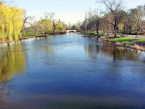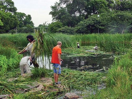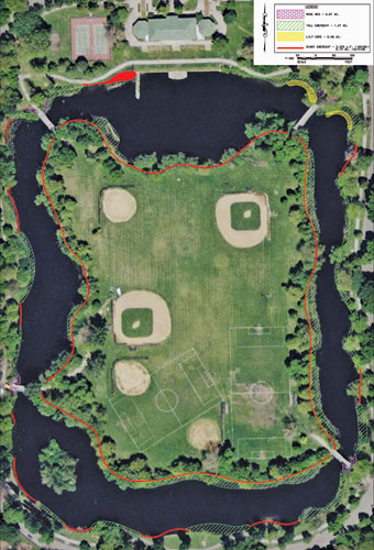 Integrated Lakes Management, Inc. and Aramark Services bring one of Chicago's premiere park lakes back to life. Sherman Park's lake is a 60-acre jewel built in 1905-06 by the Olmsted Brothers and features a square mote-type arrangement covering more than 11 acres; on the island sits soccer and softball fields. Access to the athletic fields is over stone bridges at each corner.