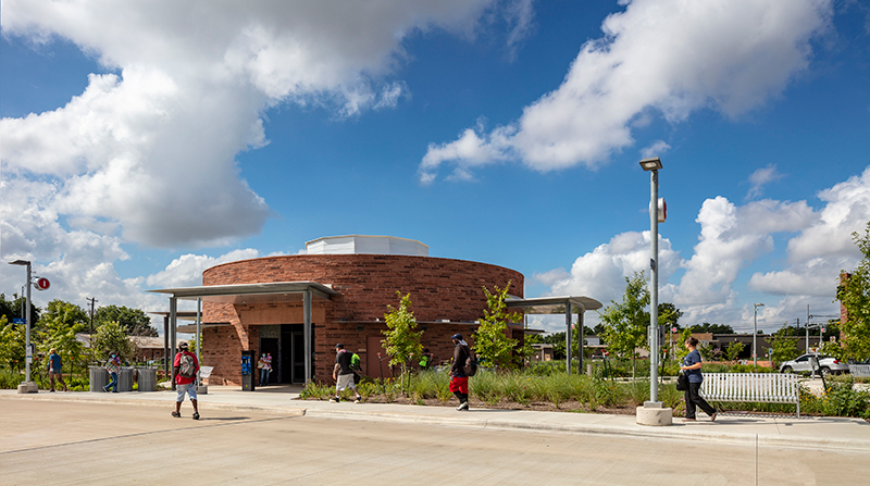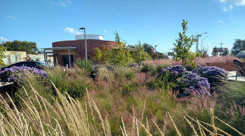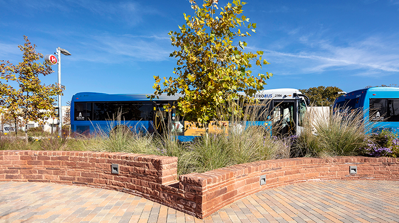 The Streetscapes Issue of Landscape Architect and Specifier News saw many firms submit their projects for feature consideration. Ardmore Depot Park & Streetscape is one of several great projects we are excited to showcase on LandscapeArchitect.com.The Richard Moya Eastside Bus Plaza, once a nondescript road median, has undergone a remarkable metamorphosis into a thriving sanctuary for both commuters and wildlife. Named after Richard Moya, the first Mexican American elected to public office in Austin, this plaza now stands as a vibrant testament to ecological restoration and community engagement, providing daily comfort to over 600 riders.Centrally anchored by a circular passenger station, the plaza unfolds into a network of pedestrian-friendly spaces designed to prioritize both functionality and aesthetics. Travelers can now wait for their buses in a sunken courtyard surrounded by lush, layered plantings, seamlessly integrated into a comprehensive stormwater management system that not only detains and directs water but also shields from the hustle and bustle of frequent bus traffic.