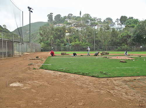 Riddle Park Baseball Field, home of Laguna Beach, California Little League since 1962, received an infield makeover. Landscape contractor Mark Linton teamed with Barney Lopas, head groundskeeper for the Los Angeles Angels of Anaheim, as well as Mannie Adams of Sports Field Services to complete this 1/2-acre project.
