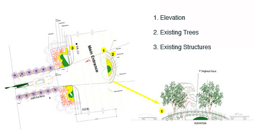 I was to work based on the already approved site plans, which was under construction, so moving parking lots and other structures, as I would have liked, was not going to happen. The site?EUR??,,????'???s main entrance posed another challenge because the access divided a private property, which limited the landscaping off the main road. The ?EUR??,,????'??sense of arrival?EUR??,,????'?? would be limited or nonexistent, so this was an important component to address.