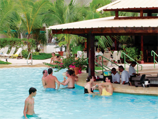 I met a third brother, Roberto, the chef who was instrumental in the layout of the wetbar and caf????(C) facilities. The indoor restaurant, the ballroom and pool bar were designed to complement each other; they are adjacent and maintain control of the food and beverage logistics. This also gives the garden rooms a relaxed environment. The pool had 4,560 square feet of swimming area, various water features and sculptures; an infinity edge had to be eliminated due to the budget limitations.
