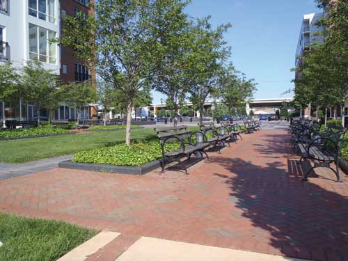 In addition to conceptualizing the overall urban design plan, Oasis designed and detailed more than 2.4 miles of urban streetscapes, creating a strong urban street scene with a hierarchy of streetscape treatments. The most intensely designed and highest-grade materials were used at the core of the development. Central to the project and at the heart of the development is a plaza and open space. Harlan Plaza was conceived to function much like an Italian piazza (city square), with vehicles playing a subordinate role to pedestrians. Harlan Park, the associated green space, connects the plaza to the Christiana River and an existing riverwalk. The riverwalk was designed by Land Design Research International in 1998. The project manager was Scott Scarfone, ASLA, when he worked for LDR. Scarfone is the founder and principal of Oasis Design Group.