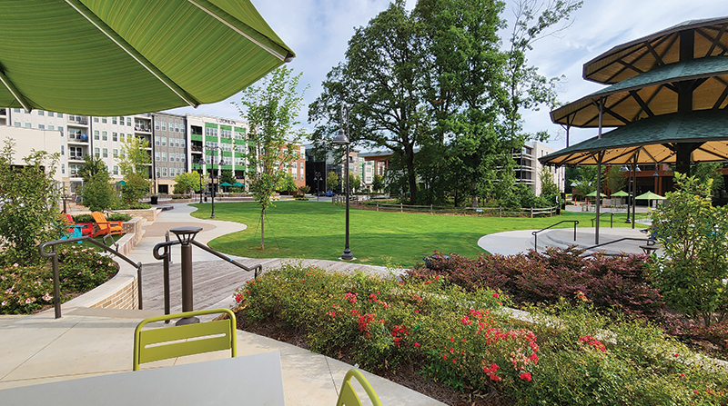 Root Design Studio (RDS) is a boutique landscape architecture firm whose passion lies in creating memorable places that are beautiful and resilient. Founded in 2011, the firm believes that "quality design" is a smart, sustainable solution that achieves project goals while minimizing impact to the land and maximizing value to the client and end users. The firm provides a full range of landscape architectural services and has built a diverse portfolio of public and private clients. RDS's approach is rooted in a deep understanding of the site, creative problem-solving, and a dedication to low impact development practices that support environmental health and community well-being. Their collaborative process begins with listening to the client, documenting the physical conditions of the site to identify the full range of challenges and opportunities, and taking all of this information to generate the most creative ideas that still achieve the client's objectives. The Grove at Towne Center; Snellville, GAThe Grove at Towne Center is part of a multi-year project to create a vibrant downtown for the city of Snellville. The first phase was a $100 million, mixed-use development that consists of luxury multi-family apartments, a new county library, a food hall and market building, two restaurants, and two commercial parcels that surround a two-acre greenspace. RDS was hired to design the hardscape amenities and landscaping for the central park. Their scope of work included a terraced seating area with multiple patios and seat walls, a paved promenade with accommodations for vendor booths, a splash pad, and a custom-designed "Tree House" park pavilion that will accommodate event rentals and live performances. PHOTO CREDIT: ROOT DESIGN STUDIO