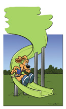 Every child has the experience of romping around on a playground. Many childhood joys are attributed to swing sets and winding slides. While the experience is fun, it can also be dangerous. It may be surprising to discover that more than 200,000 injuries occur each year on playgrounds (according to the Consumer Product Safety Council). In recent years, equipment manufacturers have made strides to incorporate safety elements into playground design. But there is something else that can be done to increase the level of safety around playgrounds - education. Curtis Stoddard, founder of the National Playground Contractors Association (NPCA), was injured as a child on a playground. Since that time, he desired to educate children the importance of playground safety awareness. Hence, the creation of Slyde the Playground Hound. Slyde?EUR??,,????'???s message is fun, energetic and heartfelt. The floppy-eared canine appeals to children, teachers and parents. Slyde?EUR??,,????'???s message is simple - playground safety. Through educational materials and personal appearances, Slyde the Playground Hound, is making his way across America in an effort to educate the public. According to program organizers, Slyde is loved by all. At a recent assembly in Idaho, the kids lined up to give the Playground Hound ?EUR??,,????'??high fives.?EUR??,,????'?? But that wasn?EUR??,,????'???t enough. One little girl asked for a hug, and of course, Slyde obliged. Ultimately, more than 100 kids hugged the loveable pooch. ?EUR??,,????'??Without a doubt, the greatest part of my job here is the reaction from the kids,?EUR??,,????'?? revealed Mitch Brian of Playground Hound, LLC. Brian oversees the marketing, public relations and sales implementation of the program. ?EUR??,,????'??They love what we do. And, having four children of my own, that is a great benefit.?EUR??,,????'?? After remaining in the concept phase for many years, Stoddard formed Playground Hound, LLC. The company has now been in operation for more than a year. Once Playground Hound was formed, Slyde was conceptualized by a former Disney artist. And, eventually, the artistic reigns were handed over to an in-house artist named Jake Amen. Immediately thereafter, Amen went to work on the storybooks and coloring books. Stoddard and his wife, Nicole, spent hundreds of hours developing the core curriculum for the program, eventually developing the Classroom Kit. The Miracle Recreation and Equipment Company later contacted Playground Hound and offered corporate sponsorship, as did surfacing supplier, Sof?EUR??,,????'??? Fall. Both companies promote and utilize the program to teach playground safety. Slyde educates in a variety of ways. One of the most prominent is a collection of educational tools - the Classroom Kit. The elements of the kit include a course manual teaching awareness and safety, stickers, pride patches, a poster, a coloring, a board game, a puzzle, a storybook, and safety guidelines. After its first year, the Classroom Kits have been utilized in Texas, California, New York, Missouri, Idaho, Vermont, Wyoming, Colorado and Delaware. Playground Hound, LLC. plans on the program?EUR??,,????'???s continued growth as it increases in popularity. In an interview with LASN, Brian said, ?EUR??,,????'??Our single biggest focus is to educate. We want to educate the public about our program. We want educators to teach playground safety on a regular basis.?EUR??,,????'?? ?EUR??,,????'??Slyde is the perfect solution to this problem,?EUR??,,????'?? added Brian. ?EUR??,,????'??Our plans include new products like the Slyde Show, a traveling assembly program that takes Slyde from school to school throughout the United States and teaches playground safety in an assembly format.?EUR??,,????'?? Currently, Playground Hound, LLC., is in the process of seeking a bus sponsor and a show sponsor, to assist with customized transportation and funding, respectively. Also on the horizon, is a program aimed at teaching parents how to create a safe play environment in and around the home. So far, Brian would rate the program?EUR??,,????'???s success an eight on a scale of ten. ?EUR??,,????'??In our First Year, we have done a tremendous job of getting the word out and getting support from key industry people and organizations,?EUR??,,????'?? noted Brian. ?EUR??,,????'??I think the only reason I would not give us a ten, is that we still have room to grown and learn. As new projects always have room to grow, we plan to evolve with this program and become as influential or more than Smokey Bear. We want kids to know that it?EUR??,,????'???s important to play safe. We want to save kids lives and help them avoid injuries.?EUR??,,????'?? ?EUR??,,????'??Our goal is to save kids from injury or death,?EUR??,,????'?? reiterated Brian. ?EUR??,,????'??We believe that many of these [injuries] can be avoided and we further believe that kids can take a greater role in protecting themselves on the playground. Our mission is moving right along and we have a huge amount of momentum. We have had many inquiries from large companies looking to sponsor the program and we have held back and been very cautious in an effort to keep the children first I the equation. Recently we have contacted the Consumer Product Safety Commission and we are hoping to work something out with that organization to further promote playground safety throughout the world.?EUR??,,????'?? Although the program has been successful, it has not been without challenges. One of the primary challenges has been incorporating the program into the public education system - time and money being key issues. ?EUR??,,????'??Unless it is considered a high priority for these schools, it just is difficult for them to justify,?EUR??,,????'?? admits Brian. ?EUR??,,????'??We are tackling that issue with unique sponsorship programs.?EUR??,,????'?? Examples can be seen with the corporate sponsorships, which allows for the program to be included ?EUR??,,?