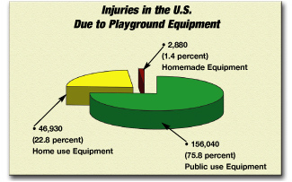 While manufacturers continue to build safer playgrounds, there are still injuries. The U.S. Consumer Products Safety Commission (CPSC) notes that from January 1990 to August 2000, there were reports of 147 deaths of children under the age of 15 that involved playground equipment. In 1999, the CPSC reports that an estimated 205,000 playground equipment-related injuries were treated in U.S. hospital emergency rooms. Of those, approximately 156,040 (75.8 percent) of the injuries occurred on equipment designed for public use, 46,930 (22.8 percent) occurred on equipment designed for home use, and 2,880 (1.4 percent) occurred on homemade equipment (primarily rope swings). On an average, over 200,000 people are treated in U.S. hospital emergency rooms for injuries associated with playground equipment.