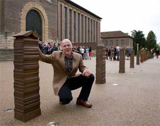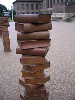 “Something old, something new…” the saying begins. The phrase can be applied to the University of Cambridge, founded in 1209. It’s the second oldest university in the English-speaking world. Well, that’s old, all right. The something new was unveiled September 2009—14 bronze sculptures in the form of book stacks in front of the university library.