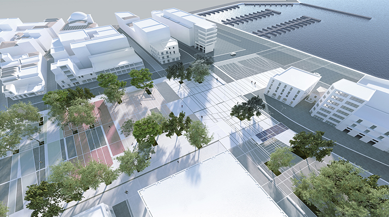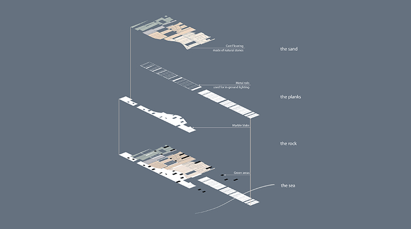 Architectural firm Land n Arch (https://landnarch.com) has envisioned Eleftherias Square in Kavala, Greece, as a transformative public space aimed at fostering unity within the urban fabric. This ambitious project reinterprets the natural landscape, drawing inspiration from three fundamental elements characteristic of the Greek seascape: sand, rock, and planks. Each of these elements is given a unique architectural expression, skillfully woven together to bridge the discontinuities in the urban landscape and ultimately guide visitors toward the sea.Connections: Urban Structure A fundamental goal of this design is to create a cohesive surface that aligns with the existing urban structure, seamlessly channeling movement toward the city's seafront. The urban lines flow gently into the heart of the square, delineating subareas and defining entrances from the city.The unifying terrain of Eleftherias Square fosters synergies between the urban environment and the square itself, incorporating the existing urban continuities of the streets into its surface. This design not only establishes a strong axis of movement toward the water but also cultivates a new urban identity for the central square of Kavala. It manifests as a linear mosaic of urban patterns and natural land formations, functioning as a cohesive whole that draws visitors toward the waterfront.