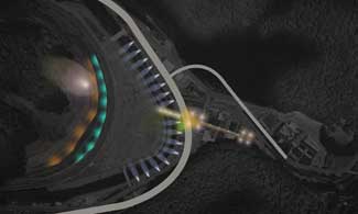 The rock cliff will be lit with a series of flood and spotlights. This is the fourth component of the plan. The lights will be manipulated from a control center at an overlook at the base of bridge tower. Residents and visitors will be able turn the lights off and on, change the intensity of the lights, change colors and direct the location of the spot lights on the rock wall from the control center. It is anticipated this will become an evening tourist attraction. The geologic and coal mining history of the region would be told using a series of interactive lights connected to interpretive displays at the control center.