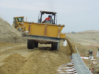 The cost savings of integrating wall construction with the grading operation will result in significant cost savings over alternative methods, but the placement of the geosynthetic reinforcement and wall facing must be integrated with the placement and compaction of the fill. If this can be facilitated, the cost and time of double dirt handling is avoided.
