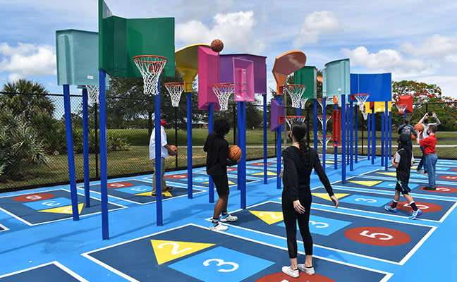 There is an often overlooked polarity in the world of ball-playing sports. We identify these polarities as self-competitive sports, rival-competitive play. And they do indeed belong at each end of the spectrum of our shared community spaces. They make up our neighborhood and neighborly NARE 1playing fields and common-ownership spaces designated for active (eg. basketball, tennis) and passive games and play (eg. bocce, Bankshot, golf). They are generally the familiar play fields, courts and the recreation assets a community provides. How well these assets are deployed in the community is another question important for the readers of this magazine as a separate related subject. The rival-competitive opponent-based sports are well known; they are mostly team against team with one side required to overcome and "beat" the other. Success is measured solely by conquest (which happens to be the English translation of the Greek word Nike, an all too familiar brand of sports apparel). Players are not necessarily focused on getting better for their own sake, by improving their skills at the sport's challenge regardless of others. Their metrics are based on winning or losing against others - not alongside other "participants." The purpose is to overtake, "gain mastery over" and vanquish opponents we use such terms as crushing and routing; we, as reflected in sports reporting, decimate and obliterate, winners trounce, pommel and pound; they beat up and knock the socks off by pulverizing and crushing opponents. These all emerge from what we ironically call play. Beating, drubbing, whipping, battering, pasting, walloping, thumping, shellacking, and the like are all recognized sports usages. These terms are familiar synonyms not only for combat and war but for our opponent-based rival-competitive fields of play. To have your project featured in LASN or on LandscapeArchitect.com please email dherbold@landscapearchitect.com