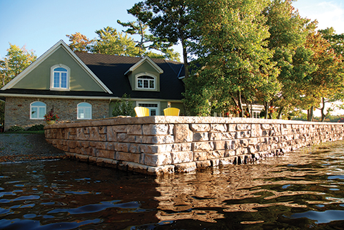 The Outcome The project included 350 retaining wall blocks equaling approximately 2,000 square feet (185.8 square meters), plus 72 caps. The new wall stands about one foot (.3 meters) taller than the previous wall to give the home a little more protection. "We've had the wall for two to three years now, and it's held up really well," Fisher said. "The ice just crashes against it in the spring when it's thawing, and the blocks all still look great." In addition to shoreline protection, this project also included a boat launch incorporated with the wall. "It's the only one I've seen like it on the lake," Searle said. "That made it a bit unique." The Fishers were so happy with the results of the wall that they've since expanded it. This project was the recipient in 2013 of the "Residential Wall of the Year" in the Rocky Awards, an annual honor recognizing the best projects from around the world completed with the manufacturer's products.