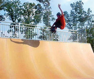 These ramps are up to eight feet tall and 24 feet long, with all the features one expects in a quality ramp: steel edging, copings, poly underlayment and phenolic Skatelite surfacing. The one-piece welded frame provides strength. By using a hot-dip galvanized finish, Hot Rails can offer a 20-year warranty on the frame. The ramps, lighter, and easier to handle, are totally enclosed to provide the maximum in safety. For modest budgets, wood frame portables are also available. The company ships one-piece half-pipes, ?EUR??,,????'??an industry first,?EUR??,,????'?? it says.
