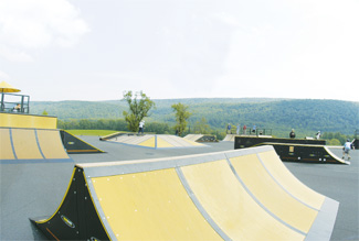 Some companies are supplying state-of-the-art, steel-frame, hot-dip galvanized, ramps with a phenolic surface that are delivered to the site nearly ready to use. Just attach the ground approach plates and the guardrails and they are ready to ride for boards, blades and even BMX bikes. Hot Rails of Orange, N.J. supplies quarter pipes, wedges, fun boxes, spines, jump boxes, and even pyramids that can be easily moved.