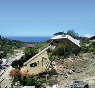 The Laguna Beach-Bluebird Canyon landslide made national news in June 2005 when the entire side of this steep hill slid down, shearing off over 500,000 cubic yards of earth, destroying 12 homes and damaging or threatening many others in what had been an idyllic coastal neighborhood.