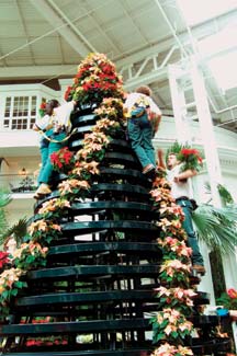 Development of the atrium required thousands of hours of study, design and technical drawings by a team of experts, as well as inspection of conservatories in England, Scotland, Italy and Canada. The end result rivals even the best botanical gardens in the world. But unlike many places that house tropical plants, where humidity is kept at a high level, the guests, once again, come first. As a result, an elaborate climate control system keeps the temperature at about 71 degrees Fahrenheit and the humidity at 55 percent?EUR??,,????'???a more comfortable environment for guests to enjoy the gardens, but one that also makes plant care a bigger challenge for Malone and his team.