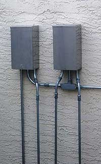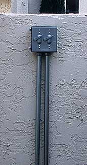 There are three transformers in the rear yard to facilitate the flexibility previously described. However, only one unit has the digital timer/photocell combination. The other two have relays which get their command from the other transformer. This eliminates multiple photocells which cannot be calibrated to come on at the exact same time. A single photocell has everything illuminating at once.