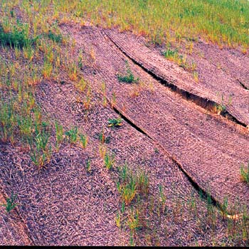 "In terms of price, bonded fiber matrix products are highly competitive with low-to-medium cost erosion control blankets," says Earl Dahlin, P.E., Fiber Marketing International, Renton, Wash. "Depending on type and amount of netting, installed cost of a straw blanket can range from about 75 cents per sq. yd. to about $1.15 per sq. yd. Material and labor costs to install a bonded fiber matrix vary with the rate of application. Typically, a 3,000-lb. per acre treatment costs about 65 cents per sq. yd., while a 4,000-lb. per acre application costs around 90 cents per sq. yd."