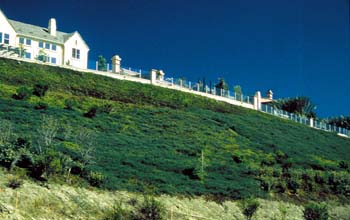 One of these projects was installed at Serenata, a residential development in Carlsbad. In November 1997, about two acres of disturbed, very erosive soils were treated with EcoAegis, a bonded fiber matrix, to protect them from erosion over the winter until construction resumed in the spring. The 2:1 or slightly steeper slopes varied in length from about 100 to 150 ft.