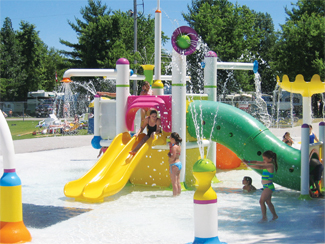 Bissell?EUR??,,????'???s Hideaway – A camping resort near Niagara Falls, Ontario, Canada, has just completed the installation of a new 4,000 square foot spraypark to complement their aquatic facility and add an attraction for the younger families. Owner Ed Miklavcic wanted to create a colorful aquatic playground that would offer the safety of a shallow pool and an abundance of water activities to keep the younger set busy for hours. The playground has an Aquadek central climb and slide structure surrounded with Aquaton??????oe spray features, ground jets and interactive water toys. A little standing water adds a lot of play value and slows the running to maintain a safe and fun-filled play attraction. Parents can relax as they can always see their children and know that they are not near deep water.