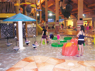 Wilderness Resort – Indoor water play is now becoming a common site in Wisconsin Dells, Wis. The Wilderness Resort has found that indoor water play significantly increases room sales and extends weekends for young families at the hotel. Often a forgotten age group in water play area, the babes in arms now have a water play structure of their own. The Baby Bungee is a structure with four baby bungee jumpers. Here, parents can place their babies in appropriately sized seats for some bouncing fun. Usually situated away from the boisterous activity of the older children, the Bungee is a great way to give parents a rest and babies some fun water activity.