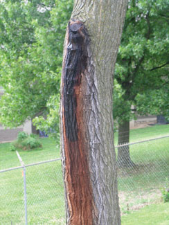 Bacterial wetwood, also known as slime flux, is a common disease that affects the core of many shade and forest trees. Symptoms of this disorder include a water-soaked, yellow-brown discoloration of the wood, generally confined to the central core of the tree. Bacteria enter through open wounds from boring insects, mechanical damage, or poor pruning, and the build-up of bacterial populations within the tree causes fermentation of tissues, thus resulting in internal gas pressure. The gas pressure and high moisture content cause a foul-smelling, slimy oozing or bleeding of slime through bark cracks. Wetwood slime is toxic to the tree's cambium, and foliage, young shoots, and grass die if slime flux drips on them. No effective methods exist to eliminate wetwood disease, but preventing damage and stress to a tree's roots and stem is the best way to avoid a serious problem.
