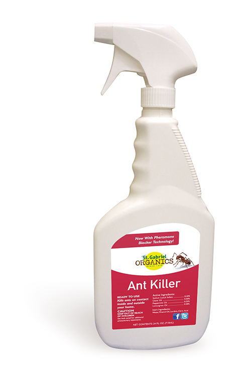 St. Gabriel Organics Ant Killer now uses pheromone blocker technology. It's all natural, made from clove oil, peppermint oil and lemongrass oil. The insecticide kills ants on contact, great for killing and repelling them indoors and out.