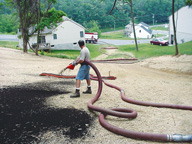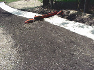 Erosion and sediment control is a serious expense to many contractors. The costs for effective erosion control are disproportionate to the amount of aggravation and problems they create on job sites, especially if products are installed improperly. These problems are receiving more media attention as the federal government tightens the regulations pertaining to sediment runoff and clean water. Many public awareness groups are realizing the impact that sediment has on our streams, rivers, and bays. In March 2003, Phase II of the NPDES (National Pollution Discharge Elimination System) regulations will start and this has been a partial driving force in the increase in business for River Valley Organics. The current erosion control methods (called BMPs for Best Management Practice) are adequate at best. Silt fence, for example, does not filter out suspended solids in storm runoff water; instead it depends upon ponding water to allow particles to settle out. It is not uncommon to see silt fences either tipped over by rainwater or simply falling down due to improper installation. Traditional erosion control blankets, while helpful, are really only effective once the vegetation has been established. In the winter or dry spells when seed will not grow, traditional blankets have little effect at all. They do however, work well in conjunction with compost blankets and in high-flow situations. Thorough slope stabilization relies on intimate contact of the blanket to the soil surface. Only a "loose" material such as compost is able to achieve this. Unfortunately, many of our current controls are driven by price, not by results. One solution that River Valley Organics has found with the help of Filtrexx International is the effective and economical use of composted materials for erosion and sediment control. River Valley Organics has been able to replace silt fences with more effective compost berms and FilterSoxx. Slope stabilization can be achieved with layers of compost injected with seed, called ?EUR??,,????'??compost blankets.?EUR??,,????'??? Compost will hold in sheet flow applications where hydroseeding will fail and soil will run off. This allows erosion and sediment control to be achieved on the first application rather than the repeat applications and higher maintenance often required by more conventional products. We use a technique called terraseeding to establish germination on flat areas as well as steep slopes. The severity and length of the slopes will help to determine the thickness of the material to be applied. Our project was a hillside that had been cleared of trees and vegetation and then graded and seeded. The project was done in early June in South Central Pennsylvania. We have had a very serious drought in this area for a few years and erosion control is not the top priority for many people. Sudden thunderstorms with large quantities of rainfall in a brief period are not uncommon. This is what happened after the slope was graded and major washouts developed, some as deep as 12 inches or more. The seed and straw that had been applied simply washed away. At this point River Valley Organics was contacted and we applied a series of controls to stabilize the slope as well as to establish vegetation as quickly as possible. We started by re-grading the slope and then removed the straw bales and replaced them with FilterSoxx. These are made of screened, large-particle size compost encased in a mesh tube form which allows water to pass through but slows down the velocity and catches any sediment in the stream. It also changes the water movement from channel flow to sheet flow, which is more easily controlled. Once the filter berms and FilterSoxx were in place, we installed a compost blanket. This consists of finer grades of compost with seed directly injected into it at the time of application. Allowing the seed to be planted as opposed to being exposed on the surface is one of the advantages of seeding in this method. The compost is also less likely to erode due to the natural tendency of the particles to mesh together and form an interlocking "blanket" effect. The results were good considering there was a sudden downpour again the day after the compost was installed and there had been no significant rainfall in the four weeks following the project. Where the compost was thicker, the germination was much better due to the ability of the compost to hold more moisture. Shade also made a difference. This slope is south facing and exposed to the summer suns full blazing force. Eventually, when the turf is fully established, the FilterSoxx will be removed allowing the turf alone to maintain the integrity of the slope. Compost can also be used in FilterSoxx to provide inlet protection and as a "bio-log" for stream bank stabilization. Since compost is generally manufactured from recycled waste products like leaves and twigs, it can often be acquired at a reasonable cost. The main difference between the FilterSoxx being used on stream banks, in combination with any option of backfill media, is that the vegetation grows out of the socks and into the banks. At the same time, the backfill, which is also seed injected, grows together with the socks to create a truly sustainable option for this challenging area. As floodwaters rise they deposit sediments before receding. This allows the vegetation to grow up and through the new deposits, creating a more sustainable system. Other technologies do not offer an environment as ?EUR??,,????'??growth friendly?EUR??,,????'??? as these systems based on compost. The installed costs of the berms or socks for silt fence replacement are often less than what the costs would be for silt fence, and compost is more effective. For slope stabilization, compost is very cost competitive to higher performing synthetic blankets and it adds to the soil as well as providing a stable and protective area for seed to germinate. But compost is not just compost; quality contr