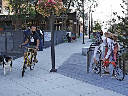 Bell Street Park has become an "outdoor living room for park experiences," a place where people can gather and socialize, shop and dine, be entertained and otherwise enjoy a chic lifestyle. The biggest challenge facing the design firms was how to create "people oriented park experiences" in what is clearly a highly urban area. At the same time, accessibility to bicycle and motor vehicle traffic had to be maintained.