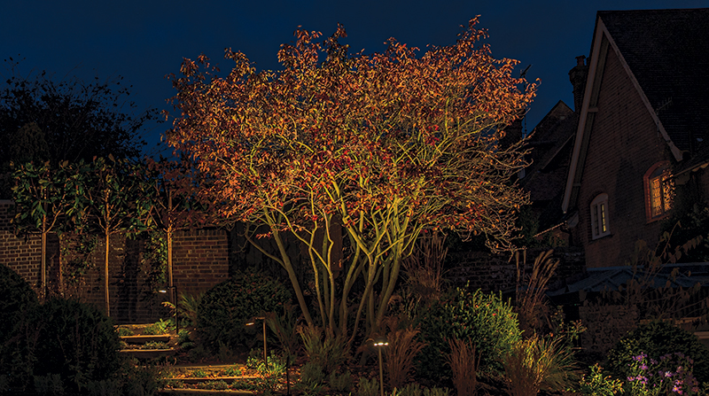 In the small and culturally significant town of Arundel in West Sussex, England, this private residential garden sits mere steps from the imposing Roman Catholic Cathedral and within a short walk of Arundel Castle, a defining medieval landmark rising above the townscape. In such a storied context, subtlety was not simply preferred, but essential. Landscape lighting designer Mark Packham of Garden Spark was tasked with using lighting to enhance the garden's inherent romance while respecting its sensitive surroundings and the community's expectations of visual restraint.The garden itself was designed and constructed by landscape designers Roger Smith and Chris Mennie of Quercus Garden Design. Their carefully considered planting - featuring Columnar Hornbeam (Carpinus betulus 'Fastigata'), Ornamental Pear (Pyrus calleryana) in a pleached formation for privacy, hedges and domes of Yew (Taxus baccata), as well as Shadbush (Amelanchier) and Crab Apple trees (Malus sylvestris) - provide a rich canvas for nighttime transformation. The challenge was to extend the experience into the evening without introducing harsh brightness, visible glare, or disruptive spill light into neighboring properties.