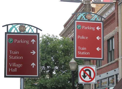The 2005 downtown Comprehensive Plan recommended community-wide wayfinding to help motorists, cyclists and pedestrians better navigate in the community and downtown area. Improvements to the streetscape and pedestrian zones in downtown La Grange were done prior to the wayfinding signs, along with parking lot improvements and the construction of the village's first and only parking deck. The village desired several wayfinding sign types: informational kiosks, parking lot signs and downtown gateway entrance features (future phase). The signage needed to convey the essence of La Grange: a good place to raise a family, a community with cultural amenities (music, art and theater), excellent dining and shopping destinations.