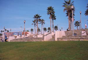 The City of Huntington Beach recently completed a two year project to improve the area near the famous Huntington Beach Pier, which was once destroyed by storm damage in 1988. "The goal of the project was to provide better public access to the events that take place at the beach," said Jim Pickel, Project Manager, Purkiss-Rose, RSI, the Landscape Architect for the project. The project included the addition of an artist-designed public plaza and amphitheater located at the foot of the pier, along with the installation of a special "wave" patterned pavement.