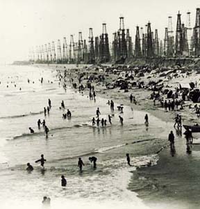 During the oil boom of the 20's, the population of Huntington Beach tripled and oil wells began popping up everywhere. When oil was discovered below the ocean floor, a technique known as slant drilling was developed to reach the oil from land, while preserving the beach. By the 30's, the City had developed the surrounding territory near the beach and the site became a popular attraction. Today the area is still a favorite gathering spot for residents and tourists from around the world.