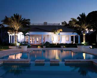 The entire lighting system is choreographed and computer-operated for maximum control and efficiency with a series of lighting programs which add or subtract light where it is needed for special effect lighting, such as at the pool deck, the porches or the expansive landscaped grounds.