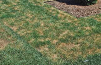 Brown patch disease symptoms include leaf color change from healthy green to tan-brown with the leaves often turning a reddish color as they die. This reddish color is an early symptom that may not be seen, and only leaf death is reported. The dead grass generally appears in rings or circular patches, but it can also show as streaks or incomplete rings. Brown patch most commonly occurs in the summer during rainy, humid weather, but the fungus can remain in the soil for years. Dr. Lane Tredway, associate professor of plant pathology at North Carolina State University, says that good drainage, adequate nitrogen levels, and removal of dew on grass blades help reduce brown patch.