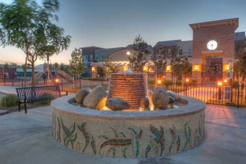 The five fabulous fountains of Tralee Village add identity and aesthetics to the development. Each one is a unique jewel of individualized, colorful custom tile mosaics.