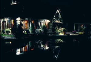 Sometimes lighting from inside the water is not the best solution. Leaving water features completely dark from within, especially ponds, can also enhance the clients overall enjoyment. This approach allows the designer to create mirrored effects on the waters surface.