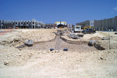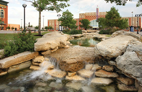 SPSD, Inc. built two fountains in the heart of the Arlington Highlands, a mixed-use development in Arlington, Texas. The stream water feature was designed to be a focal point for the development, as well as a place to relax. Each of the two streams boasts more than 25,000 gallons.