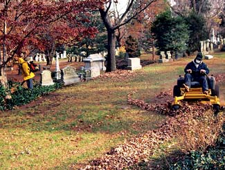The cemetery has three full time arborists to handle the tree culturing practices and keep ?EUR??,,????'?????<?everyone?EUR??,,????'?????<? healthy. Tree removal is contracted out, particularly when it comes to larger trees. A tree removal company comes in with a crane and its specialized equipment to tackle those tasks.