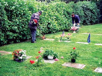 In short, large parts of the grounds are not watered and water conservation is always kept in mind for those areas that do receive the liquid stuff. In that vein, the greenhouse deploys drip irrigation for the three-winged 10,000 sq. ft. greenhouse. Here is grown mostly annuals, some perennials and groundcovers?EUR??,,????'?????<??oeabout 75,000 bedding plants a year. Begonias and impatiens are commonly grown, as they do well in shade?EUR??,,????'?????<??oemuch of the cemetery has canopy; geraniums, pansies for spring and New Guinea impatiens are also propogated. Some perennials (hostas, etc.) are brought in from local nurseries.