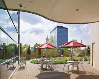 The site plan also called for rerouting the loop road. ?EUR??,,????'??We made sure the loop road stayed on the outside of the development,?EUR??,,????'?? Mr. Andriese explained. Linden trees now line the loop road. The fan-shaped parking lot sports a perimeter of grass and 18 islands of grass, Cleveland select pear trees, flowering and shape trees, low evergreen hedges and perennials to soften and freshen the hard surfaces.