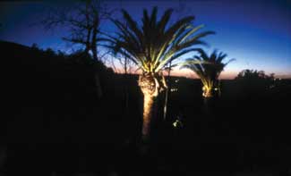 There are many techniques for landscape lighting from which to choose. When working with new construction it is a good idea to specify a number of exterior rated duplex GFI (ground fault interrupter) receptacles for future landscaping or portable luminaires for parties.