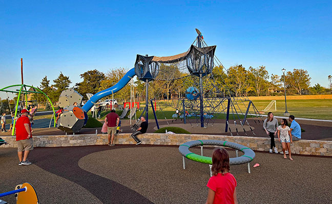 In 2020, Oakdale Public Schools embarked on a mission to update their outdoor learning, recreation, and play spaces. They passed a bond issue to overhaul their outdoor spaces to provide a fun, stimulating, and safe environment for the students. As part of this plan, they commissioned CLS & Associates, LLC to design a destination playground that would not only cater to the school's needs but also become an asset to the entire community. The surrounding community is invited to use the playground at any time. CLS worked closely with teachers and students to understand their needs and desires. They sought feedback on the types of play activities and equipment that students enjoyed and took into consideration the educational and developmental goals of the school. This collaborative approach ensured that the final design incorporated the end-users' inputs, making it safe, functional, and beneficial to the students. The playground boasts a range of features, including innovative equipment, including a coco swing, bloqx climber, Inclusive carousel, among others. It also includes a multi-purpose sports court, outdoor classroom, amphitheater, stage, soccer field, artificial turf lawn, and shade structures for the students, teachers, parents and neighborhood groups. The $1.4 million project was designed to cater to the various age groups of students in the school. It provides areas for young children to play and explore, as well as areas for older children to engage in more challenging physical activities. The playground is designed to foster socialization and community building. The design encourages collaborative play, allowing students to develop their social skills and learn the value of teamwork and cooperation.