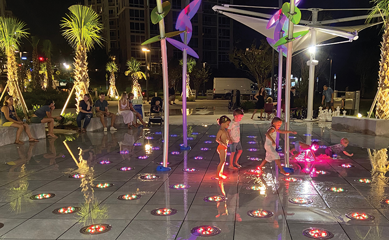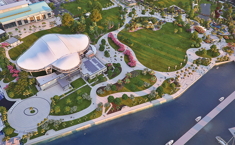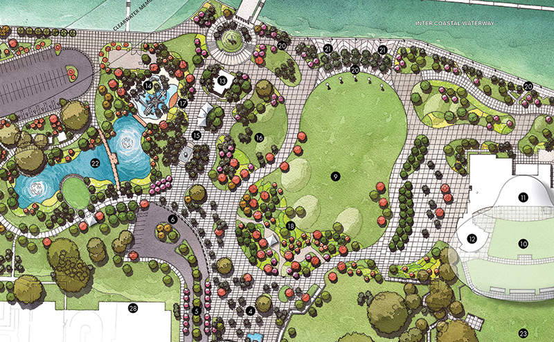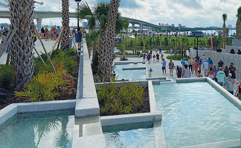 Stantec provided architecture and interior design; landscape architecture; civil, structural, mechanical, electrical, and plumbing engineering; coastal resiliency analysis; and construction administration services for the project. The reimagined park creates an enhanced sense of place and community. It features 12 acres of new park greenspace, a nautical-themed playground, an interactive pop jet splash pad, a wildflower garden, walking and biking trails, and local artwork, creating a sense of place and community. Distinctive lighting includes custom-designed stainless-steel torchiers with programmed lighting effects. The design of the torchiers was inspired by native mangrove trees. More Improvements A new amphitheater, the Sound, is an outdoor music venue with an overall capacity of 9,000. This includes 4,000 covered seats in an open-air arena and an additional 5,000 on the sloped lawn with a state-of-the-art stage and green room facilities to attract top touring groups. The venue will host year-round performances with a backdrop of memorable waterfront sunsets. The Sound, and the entire park, will be a major economic driver for Clearwater. Looking Back Previously, the 24-acre site was mostly a surface parking lot and under-utilized green space that hosted a yearly jazz festival. When the city did an initial master plan study and economic impact analysis, they determined the site was a prime location to create an urban bayfront destination like none other on Florida's West Coast and be a catalyst for downtown economic development. Forward Momentum The result of that study led to Stantec winning an RFP to confirm the master plan study and provide community engagement to help receive the city council's approval. Once the master plan was approved, Stantec were engaged to provide complete design documentation from SDs to CDs, permitting, and construction administration. This included full services for landscape architecture and from their in-house teams for architecture, interior design, civil, MEP, structural engineering, and sustainability.