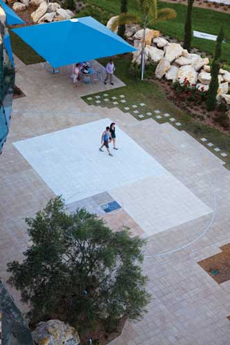 Sustainable Materials High-quality, sustainable materials were incorporated into all aspects of the landscape design. Manufactured precast stone was used for terrace pavers; permeable crushed coquina shell for gathering areas and labyrinth pathways; and LED light fixtures used for accent and area lighting are just some of the long-lasting, low-maintenance materials used in the site design. Low-volume irrigation was used for all landscape plant bed areas, while excess fountain water at the grotto is recycled into the fountain basin and not wasted.