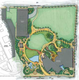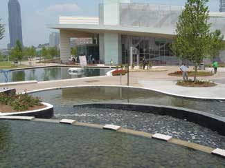 Originally, there was a design competition for the project. The competition was held three or four years before Martin Haber, ASLA Principle, Roy Ashley Associates came into the project along with Project Landscape Architect, Eric Perez, ASLA. Jerde Partnership had won the competition and created the Master Plan that Haber and Perez, the Landscape Architects of record, worked from. As the Master Planner, Jerde worked closely with the leaders of The Coca Cola Company to translate the values of the company into alternative conceptual ideas for the property. As design architect, Jerde designed the building that houses the exhibits and showcases the history of the company, its products and reflects its core values.