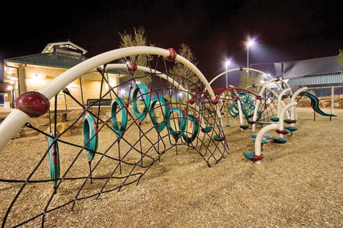 Native plants that require less water were used for landscaping the complex to reduce the overall watering needs. And lastly, recycled concrete was used for the sub-base for the cushion material utilized under the play equipment rather than the typical gravel base mix.